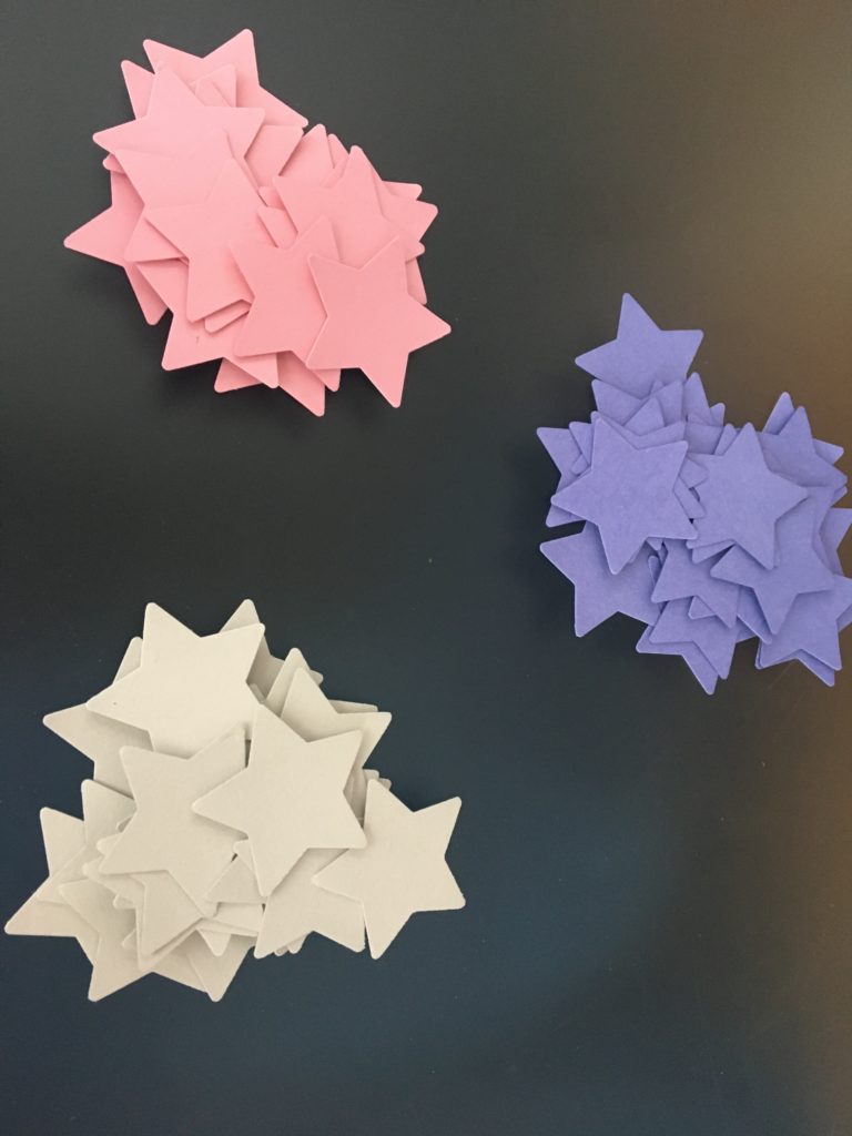 First up you cut out some stars in every color you want.